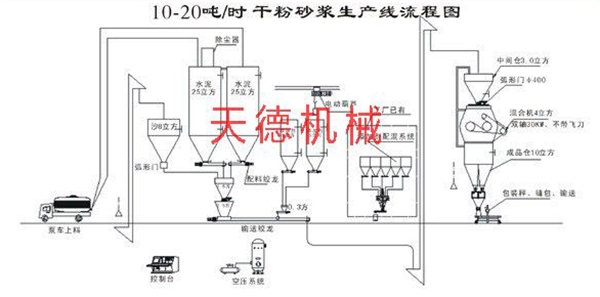 该控制系统是根据干粉砂浆生产流程工艺特点,结合先进的人性化控制理念特点开发研究而成,抗干预能力强,操作简单,灵活方便经久耐用,能更好的准确完善物料的配方比例和配比精度。。。整个生产线流程从原料,分流,输送,计量,储存,卸料,搅拌,成品出料到自动装包一条龙自动化模式。广泛适应于时产5吨--100吨干粉生产的控制设备。